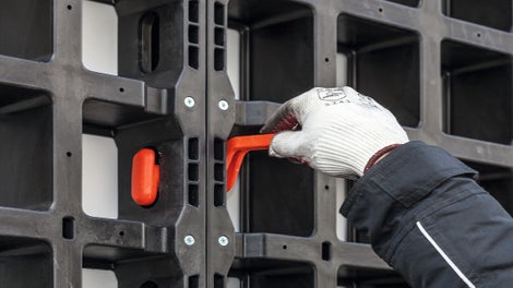 Всички операции с универсалния кофраж DUO могат да се изпълняват с минимален набор от инструменти. По този начин монтажът е почти интуитивен. С DUO се работи на ръка и елементите могат да се преместват без кран, тъй като и най-тежкият е по-малко от 25 kg.